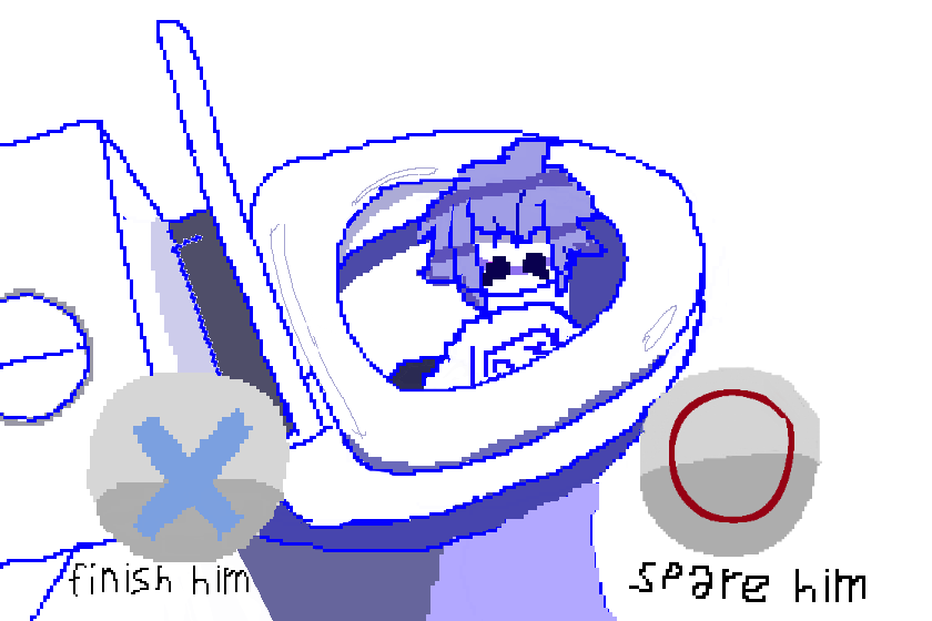 Произведение является мощным высказыванием о кризисе гуманизма. Оно сталкивает нас с необходимостью принять решение, осознавая, что сама постановка вопроса — это проявление высшей формы цинизма. В этой синей графической клетке мы видим не только персонажа, но и самих себя, замерших перед мониторами, вечно выбирающих путь, который ведет лишь к фиксации нашего собственного бессилия.