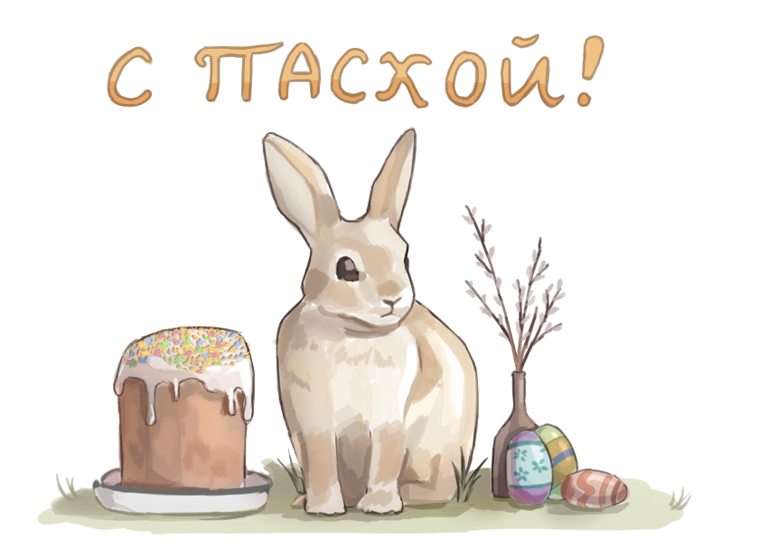 И тебя с Пасхой, дорогая! Рисунок как всегда прелесть: зайчик загляденье, а кулич прямо съесть хочется ^^