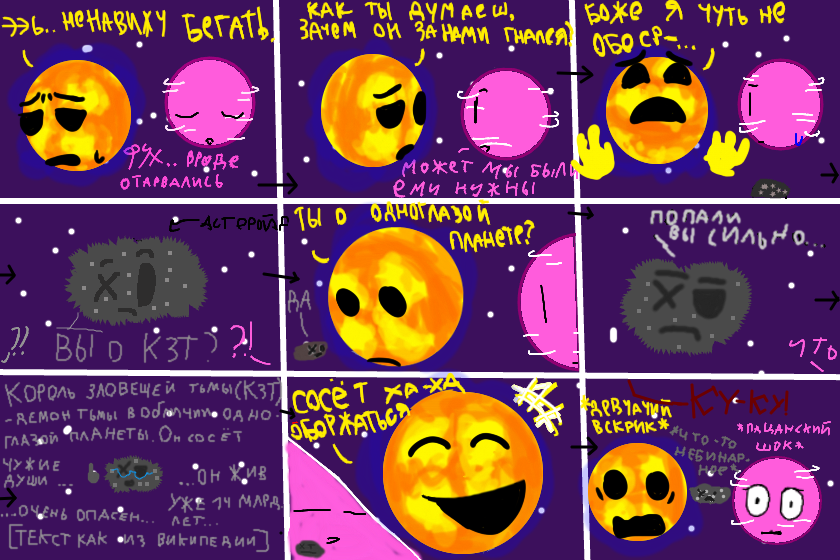 Астероид: Король Зловещей Тьмы (КЗТ) - демон тьмы в обличии одноглазой планеты. Он состоял чужие души... Он жив уже 14 миллиардов лет... Он очень опаснен... (Душнит).