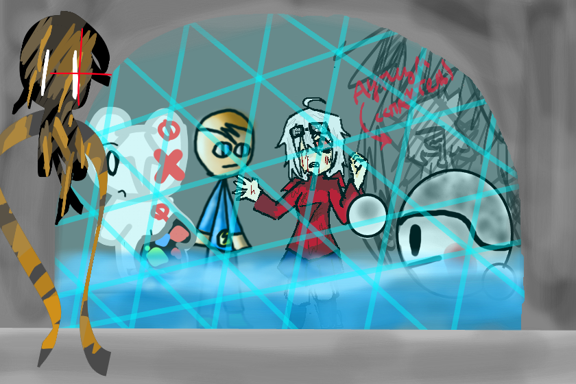 После того как зона блокировки начала наполняться водой, Эльм, Вуди, Лигий и Кона (Коноплия) немного расстроились из за этого мерзкого Нарушителя