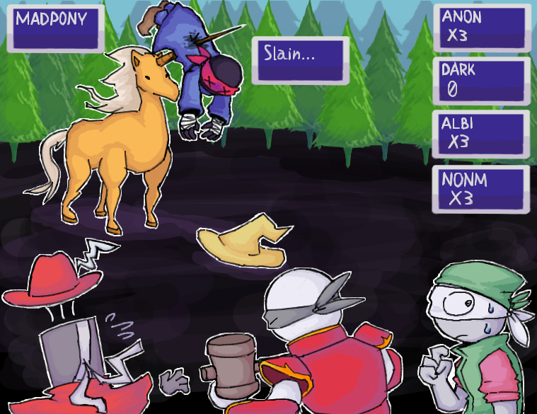 Если вкратце, я начал проходить Final Fantasy, та первая, которая на NES (на эмуляторе). Анонов я вставил сюда, т.к. наименовал героев после них.
