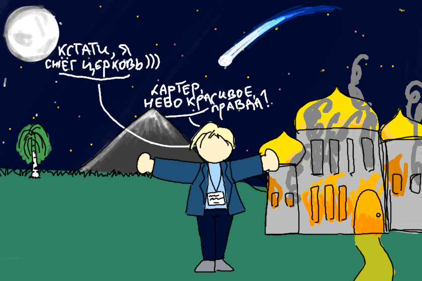 Ради тебя и твоего внимания я сдел церковь, но ты не знаешь об этом. Ты ведь любишь загадки, так вот, я убил в той церкви 10 человек, все они лежат в форме пентаграммы и улыбаются. Надеюсь, что ты заценишь))))