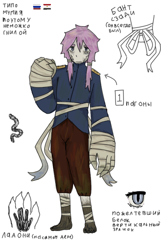юми #охз, эмм... Теперь по хедканоны Червь - пикми-капрал русской армии времëн Первой мировой войны, который умер в песках Египта и ожил в виде зомби-мумии