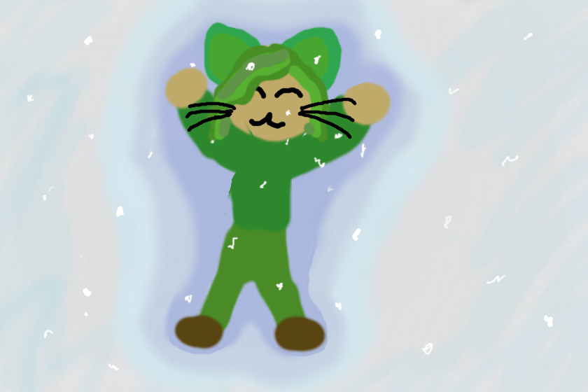 Первый снег, вот, глянь, лежит довольная, а я? А я-то что? Сижу тут и кисну :( Ну ладно, когда выпадет побольше снежка, тоже буду валяться >:3