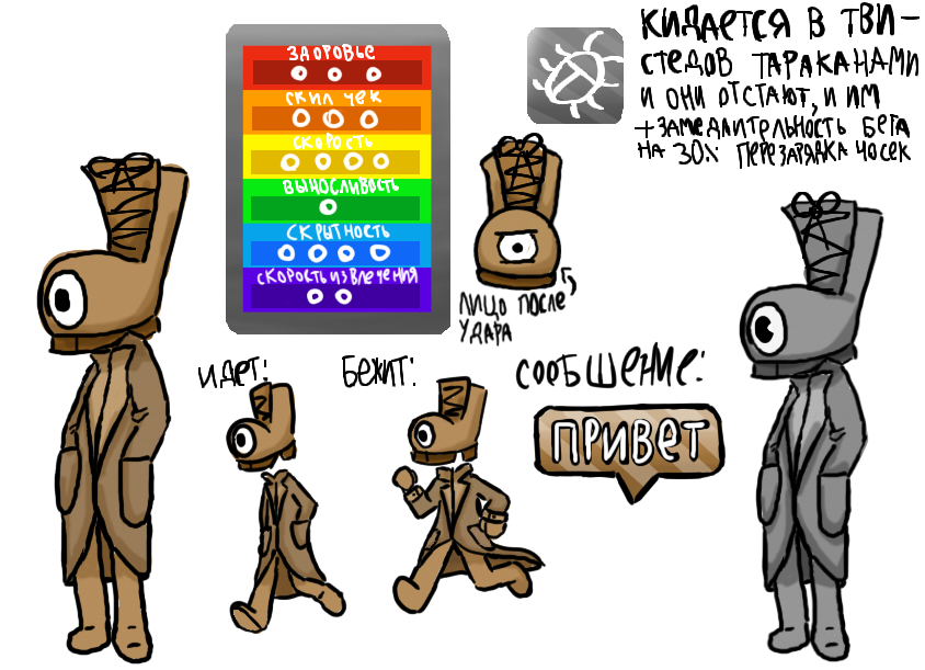 извините я не знаю что еще придумать амзавзмзазмва простите у меня нету идей для диалогов. и да эти тараканы это его питомцы, чуть позже нарисую его твистеда и тринкет