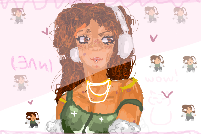 кудряшек я не умею рисовать емае ну то получилось слои было слишком много (розовый кнч я не люблю но пришлось добавить по красоте) модны