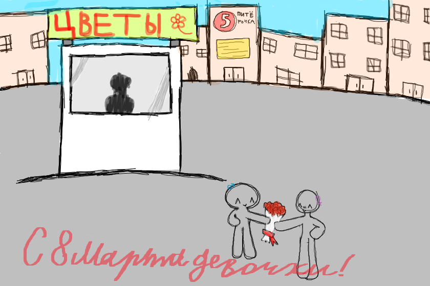 с 8 марта девочки! *Даёт букет роз*