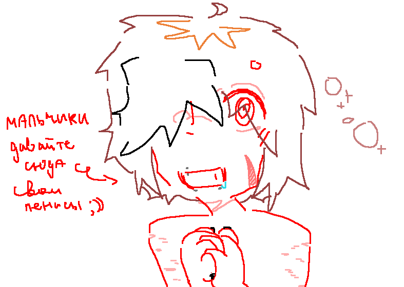 ннуу так. его зовут Леша, ему 17 ))() нуу он ПИДР,, а так же красит волосы в красный, а челку в черныц,, натуральный цвет волос: рыжий... он у него на корнях часто, пушто они у него быстро отрастают!!!! на лице шрамек ну и руки все обкромсанные пушто не оч любил себя глупий. у него есть пирса на рту, типа под губой,, а так же с одной стороны сверху, а низ выходит на губу, типа клык,, так ше у него проколоты соски, но мне лень ето рисоват. вот кароче, ддда. БОЖЕ НЕ ОБОССЫТЕ МЕНЯ т_т