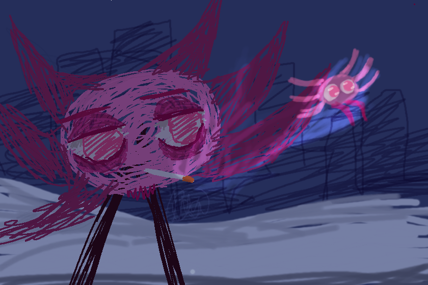 Идея арта пришла после прочтения книги Магазина Сам0убийц и просмотра экранизациии.... Тюваш Мишима ( особенно в книге ) это то как НАДО прописывать отчаянье и безумие, а мульт - как показать
