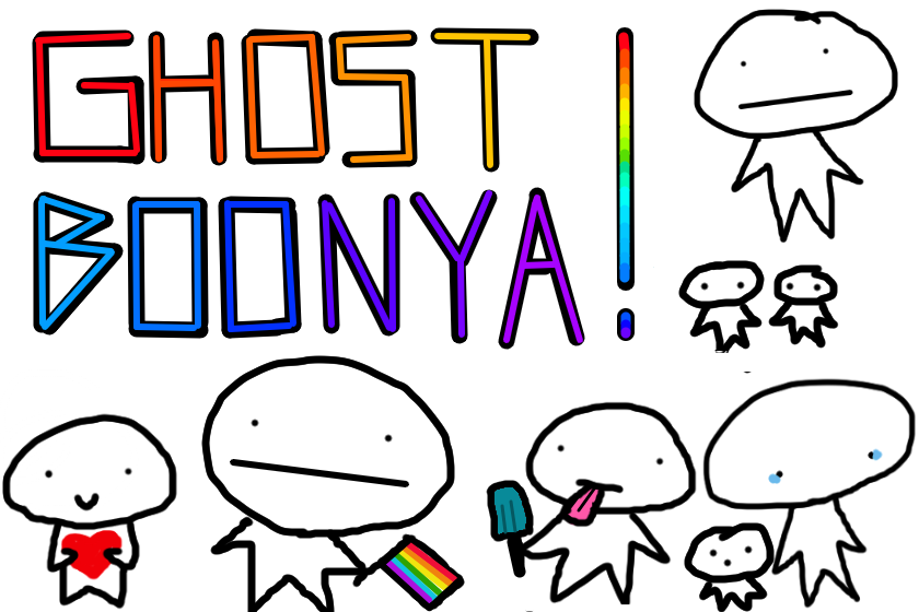 Meet Bооnya! A tiny little cute ghost, pretty friendly. I came up with him yesterday and, sorry not sorry, I'm in love with this lil cutie weirdo :>