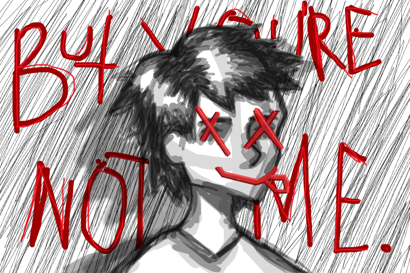 Honestly, I don't even fully get what I drew. Just another edgy dark drawing like I already have a ton of. "But you're not me"... what does that even mean? Lots of things, I guess. It's just... I have this friend who constantly trauma-dumps on me. Like, constantly. As if there's nothing else to talk about. And today she hit me with "Well, you're fine, you don't have any problems." And it hurt so bad right then... just because I don't tell her about my problems doesn't mean I don't have any. Anyway, I've archived that "friend" and I'll barely ever check what she's messaged me. Take care of your own mental health, folks.