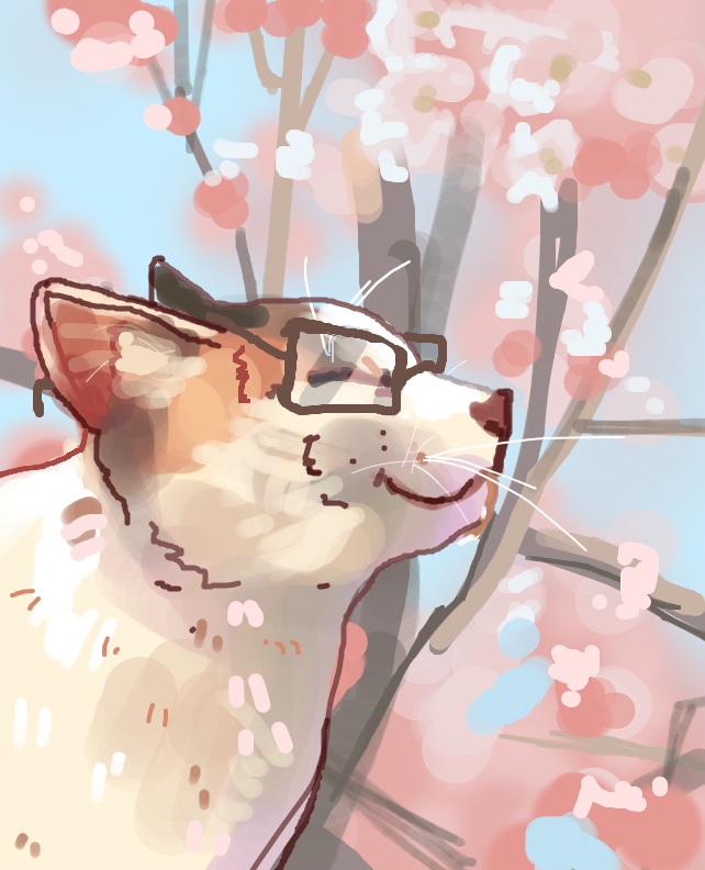 Хммм... По мордочке котик похож на японского бобтейла, растение на фоне похоже на сакуру и эти очки... Хммм... Японская версия Ученого кота?)
